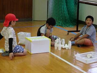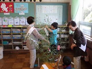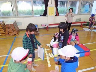 11月29日(火)に、1・2年生が「秋フェスタ」を行いました。これは、生活科の学習で、自分達で作った様々なおもちゃ(魚釣り、ボウリング、輪投げ、松ぼっくりけん玉、マラカス、ドングリごま、缶ぽっくり、船、パラシュート、くじ引き など)を使って、上新田保育園とのぞみ保育園の子ども達を招待し、一緒に楽しむことで交流を深めるという活動です。