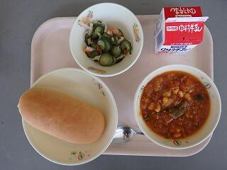 1月25日の給食は、米粉パン、牛乳、、クリームシチュー、ハムマリネでした。