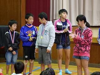 持久走大会では、1・2年生が運動場4周、3・4年生が運動場5周、5・6年生が運動場6周を、地域や保護者の方、他の学年の子ども達の声援を受けながら一生懸命走り抜きました。また、スターターや表彰は、学校関係者評価委員や民生児童委員の方にお願いしました。学校と地域との連携を一層深めることができました。6年生児童の保護者は、「6年生の子ども達は、1年の頃から見ている。ずいぶん体力がついた。もう、大人でもかなわないと思い、見ていてじーんときた。」と話していました。