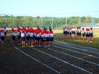 9月4日(金)は朝の活動から1校時にかけて、運動会に向けての結団式と練習を行いました。赤団か白団かの決定を団長が行い、その後それぞれの団で結団式を行いました。