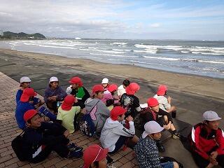 最終日は部屋の掃除点検も1回で合格しました。みんな元気で朝ご飯もたくさん食べました。雨も上がって青島にサイクリング 景色も最高 。 楽しみだった磯遊びに大喜びの子どもたちです。 あのチキンナンバンが撮影に来ていたので写真を心よく撮らせてもらいました。