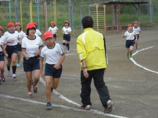 朝の活動での持久走の練習が始まりました。全校児童と職員全員で運動場を走ります。心地よい汗が流れます。
