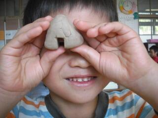 1年生が粘土で作りたいものを自由に作っています。とても楽しそうでした。