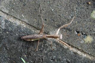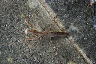 校庭の壁にカマキリがいました。壁の色に合わせて灰色の保護色になっていました。