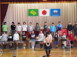 朝の集会で6年生が音楽大会での歌や合奏の発表をしました。素晴らしい発表に涙が出ました。