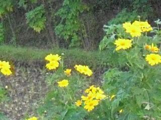 学校の西にあるイートン田んぼの近くに咲いている「こうていひまわり」です。朝日に輝いて黄色い花があざやかでした。冬に咲くひまわりです。