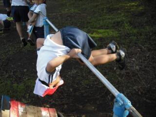 2年生の子どもたちが鉄棒を頑張っています。逆上がりができるようになった子どもの笑顔は素敵です。