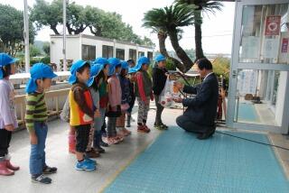 上新田保育園の子どもたちが、本校に来て、自分たちが作ったペン立てと花をプレゼントしてくれました。寒い中、みんなで来てくれて「お仕事がんばってください」と一言 疲れが吹っ飛びました。