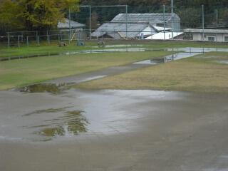 昼休みは運動場に大きな水たまり 外で遊べませんでした。
