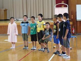 8月1日(月)は、登校日でした。真っ黒に日焼けした子どもたちの姿を見ると、夏休みを存分に楽しんでいることが分かります。全校朝会では、校長先生のお話の後、五ヶ瀬中等教育学校の生徒(本校出身)による学校紹介の発表がありました。プレゼンも準備して、とても素晴らしい発表でした。