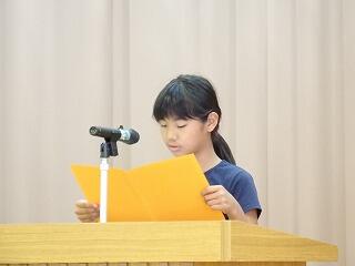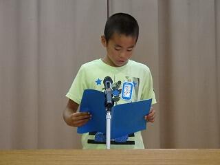 子どもたちの作文発表では、2・4・6年の代表の子どもが、2学期に努力していきたいことをステージの上で発表しました。