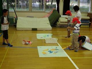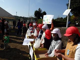 11月29日(火)に、1・2年生が「秋フェスタ」を行いました。これは、生活科の学習で、自分達で作った様々なおもちゃ(魚釣り、ボウリング、輪投げ、松ぼっくりけん玉、マラカス、ドングリごま、缶ぽっくり、船、パラシュート、くじ引き など)を使って、上新田保育園とのぞみ保育園の子ども達を招待し、一緒に楽しむことで交流を深めるという活動です。