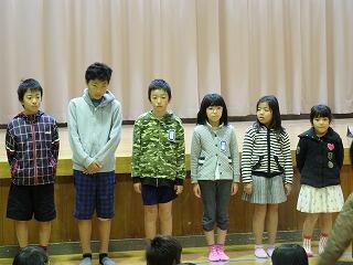 子ども達の作文発表では、2・4・6年生の代表の子どもが、3学期に努力していきたいことをステージの上で発表しました。