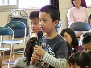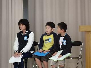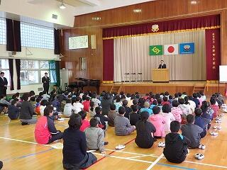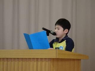 新任式の後、始業式が行われました。4・5・6年生の代表児童が、1年間の目標などについて発表しました。