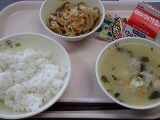 1月19日の給食は、麦ごはん、牛乳、、千切り大根の炒め煮、鳥団子汁、うまかってんでした。
