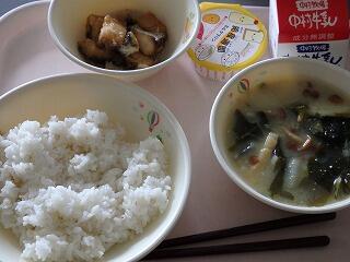 1月15日の給食は、麦ごはん、牛乳、鳥のバーベキューソース、みそ汁でした。
