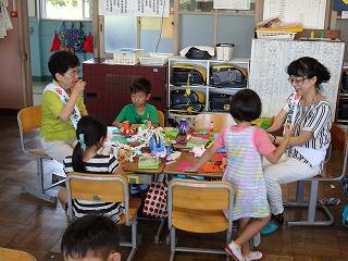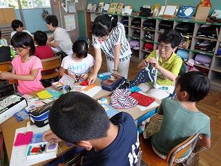 7月4日(月)に、更生保護女性会の方々6名をお迎えして、1年生の七夕の飾り作りと5年生の家庭科の授業(小銭入れなど、手縫いによる小物作り)に協力していただきました。