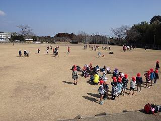 その後、本校の近くにある上新田球場に移動して、各学年でレクリエーションをして楽しんだ後、弁当を食べました。この日は「弁当の日」でしたので、ほとんどの子ども達が自分に合ったレベルで弁当作りに関わっていました。