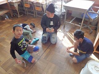 ふれあいタイム 1・2年こま回し、あやとり、けん玉、お手玉