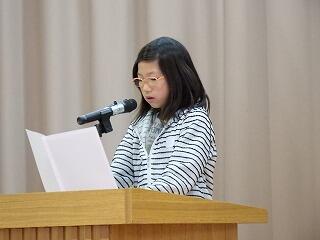 子ども達の作文発表では、2・4・6年生の代表の子どもが、3学期に努力していきたいことをステージの上で発表しました。