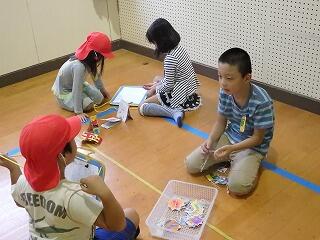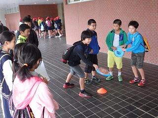 3日目は、楽しみにしていたサイクリングでしたが、雨のため残念ながら、屋内追跡ハイキングとなりました。班ごとに大縄を跳んだり、歌を歌ったりと、楽しく活動しました。