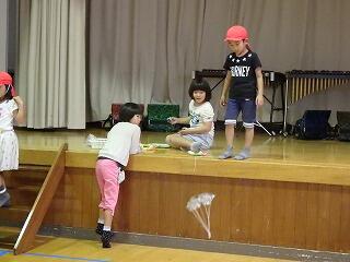 10月31日(月)の5校時の生活科の時間に、1・2年生合同で「おもちゃ祭り」を行いました。これは、2年生の子ども達が様々なおもちゃ(缶ぽっくり、ぶんぶんごま、魚釣り、パラシュート、空気砲など)を準備し、1年生の子ども達を招待して楽しむふれあい活動です。2年生がそれぞれ作ったおもちゃについて説明し、1年生が遊ぶのを見守ったり、1年生は2年生の話をしっかり聞いて、自分なりに楽しんだりするなど、大変有意義な活動でした。