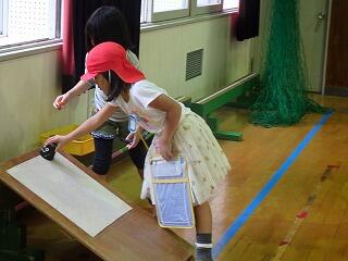 11月29日(火)に、1・2年生が「秋フェスタ」を行いました。これは、生活科の学習で、自分達で作った様々なおもちゃ(魚釣り、ボウリング、輪投げ、松ぼっくりけん玉、マラカス、ドングリごま、缶ぽっくり、船、パラシュート、くじ引き など)を使って、上新田保育園とのぞみ保育園の子ども達を招待し、一緒に楽しむことで交流を深めるという活動です。