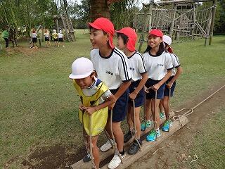 2日目の午前は、砂浜に出かけて「砂の造形」の活動を行いました。計画とは違うものができあがった班もありましたが、楽しく活動できました。午後は、フィールドアスレチックでした。青島青少年自然の家は、アスレチック遊具がとても充実しています。そして、夜は、キャンドルファイヤーでした。各学校の出し物を楽しんだり、ろうそくの炎をじっと見つめて、家族のことや友達のことなどを考えたりしました。