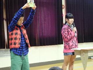 委員会集会では、4年生の代表児童が「松井秀喜」、5年生の代表児童が「やあ、やあ、やあ!おじいちゃんがやってきた」、6年生の代表児童が「卒業の歌」の本をそれぞれ紹介しました。クイズ形式で紹介したり、2人組で紹介したり、その本のよさが伝わるように話し方を工夫したりと、みんな素晴らしい紹介でした。投票の結果、5年生の代表児童が紹介した「やあ、やあ、やあ!おじいちゃんがやってきた」が「チャンプ本」となりました。