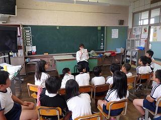 また、新富町では、町の豊かな自然とのふれあい、そして地域の方々との交流を通じ、自ら考え、自ら行動し、企画を造り上げる力を培う「しんとみチャレンジスクール」を開設しています。その第1回目の活動が「しんとみ読みがたり」の場で行われ、本校の2名の児童が、絵本の紹介などの活動を行いました。