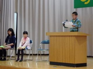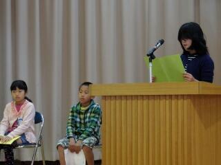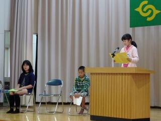 新任式の後、始業式が行われました。4・5・6年生の代表児童が、1年間の目標などについて発表しました。