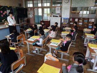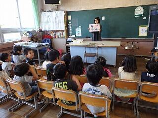 5月13日(金)の朝の時間に、ボランティアグループ「赤ずきん」の方による読み聞かせが行われました。やっぱり、子ども達は絵本が大好きです。