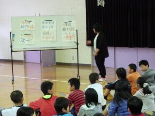 4月26日(火)に、連休前の交通安全学習が行われました。上学年(4~6年生)の子ども達は、安全な自転車の乗り方について確認しました。
