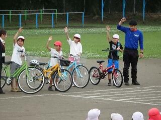 4月26日(火)に、連休前の交通安全学習が行われました。上学年(4~6年生)の子ども達は、安全な自転車の乗り方について確認しました。