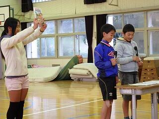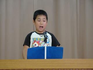 子ども達の作文発表では、1・3・5年生の代表の子どもが、2学期に努力したことや来年頑張っていきたいことなどをステージの上で発表しました。