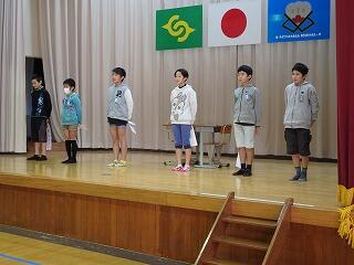 子ども達の作文発表では、2・4・6年生の代表の子どもが、3学期に努力していきたいことをステージの上で発表しました。