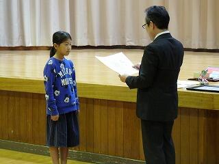 12月21日(水)の朝の時間に、表彰集会を行いました。「町読書感想文 特選」「西日本読書感想画 県入選」「町手作り絵本 特選 優秀賞」「東児湯巡回作品展 入選」「東児湯巡回書写展 入選」など、様々な作品展等で本校の子ども達が活躍しました。きっと、自分の目標に向かって一生懸命努力した結果なのでしょうね。子ども達のこれからの活躍にさらに期待したいと思います。