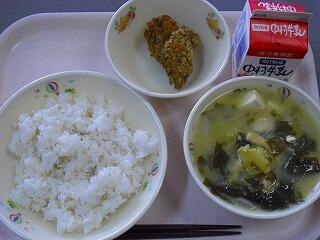11月19日(木)の給食は、麦ごはん、牛乳、とりの和風あげ、サツマイモの味噌汁でした。