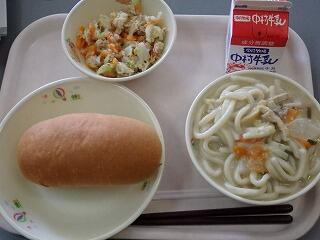 11月30日(月)の給食は、コッペパン、牛乳、ちゃんこ風うどん、ツナサラダでした。