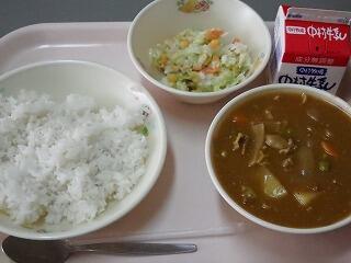 11月5日(木)の給食は、麦ごはん、牛乳、ポークカレー、コールスローサラダでした。今日も熱々の給食でした。