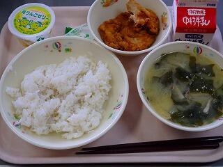 10月15日(木)の給食は、麦ごはん、牛乳、チキン南蛮、みそ汁、青リンゴゼリーでした。チキン南蛮人気です。子どもたちに人気のメニューが続きます。