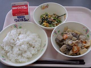 10月6日(火)の給食は、麦ごはん、牛乳、あげ魚のおろし煮、けんちん汁でした。