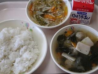 9月8日(火)の給食は、麦ごはん、牛乳、揚げ豆腐あんかけ、ごぼうだんご汁でした。