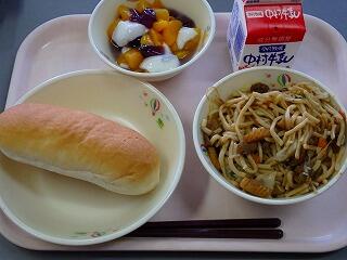 9月9日(水)の給食は、コッペパン、牛乳、焼きそば、あんにんフルーツでした。