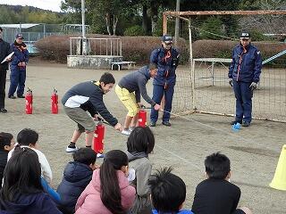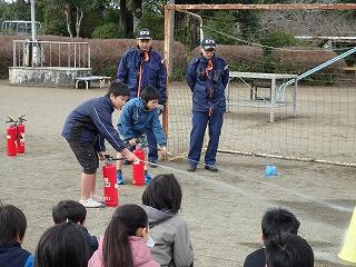 将来、火災に遭遇しても、自分の命を自分で守ることができるよう、学校では避難訓練を繰り返し行っていきます。協力していただいた東児湯消防組合新富分遣所の方々、本当にありがとうございました。