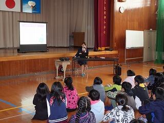 12月12日(火)に、宮崎北警察署から講師をお招きし、5・6年生を対象に「非行防止教室」を行いました。具体的には、メール等における表現により相手が誤解してしまうコミュニケーショントラブルや、なりすまし犯による犯罪に巻き込まれないようにするために、動画の視聴も含め、分かりやすく指導していただきました。子ども達にとって関心の高い内容でしたので、講師の話に真剣な表情で耳を傾けていました。