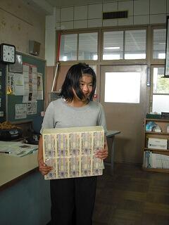 その後、「公園」「学校」「コンビニ」「遊園地」等の絵カードを、「税金を使ってつくられたもの」と「税金を使ってつくられていないもの」とに分け、税金の使われ方について学びました。最後に、講師の方から、1億円のレプリカを見せてもらい、実際に手に持ってみるとその大きさや重さに子ども達は驚いていました。