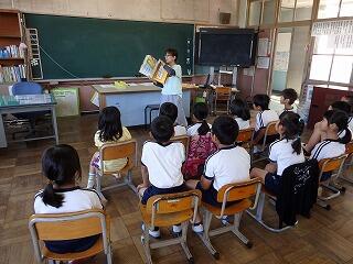 5月13日(金)の朝の時間に、ボランティアグループ「赤ずきん」の方による読み聞かせが行われました。やっぱり、子ども達は絵本が大好きです。
