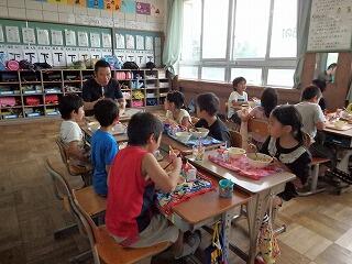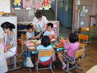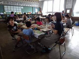 7月4日(月)に、更生保護女性会の方々6名をお迎えして、1年生の七夕の飾り作りと5年生の家庭科の授業(小銭入れなど、手縫いによる小物作り)に協力していただきました。