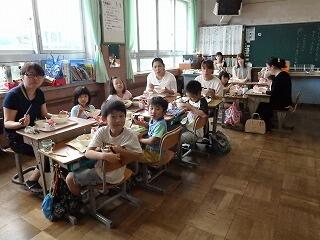 6月21日(火)に、給食試食会が行われました。まずは、富田小学校の渡部栄養教諭より、給食に関する講話をしていただきました。その後、各教室に分かれて試食しました。この日のメニューは、中華どんぶりと三食ナムルでした。おうちの人と給食を食べて、子ども達もニコニコの給食時間でした。
